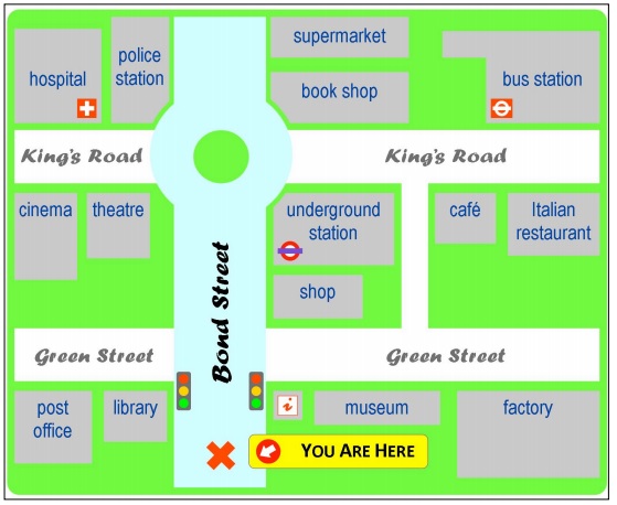 - Go ________ the traffic lights and take the ________ right on to King’s Road.